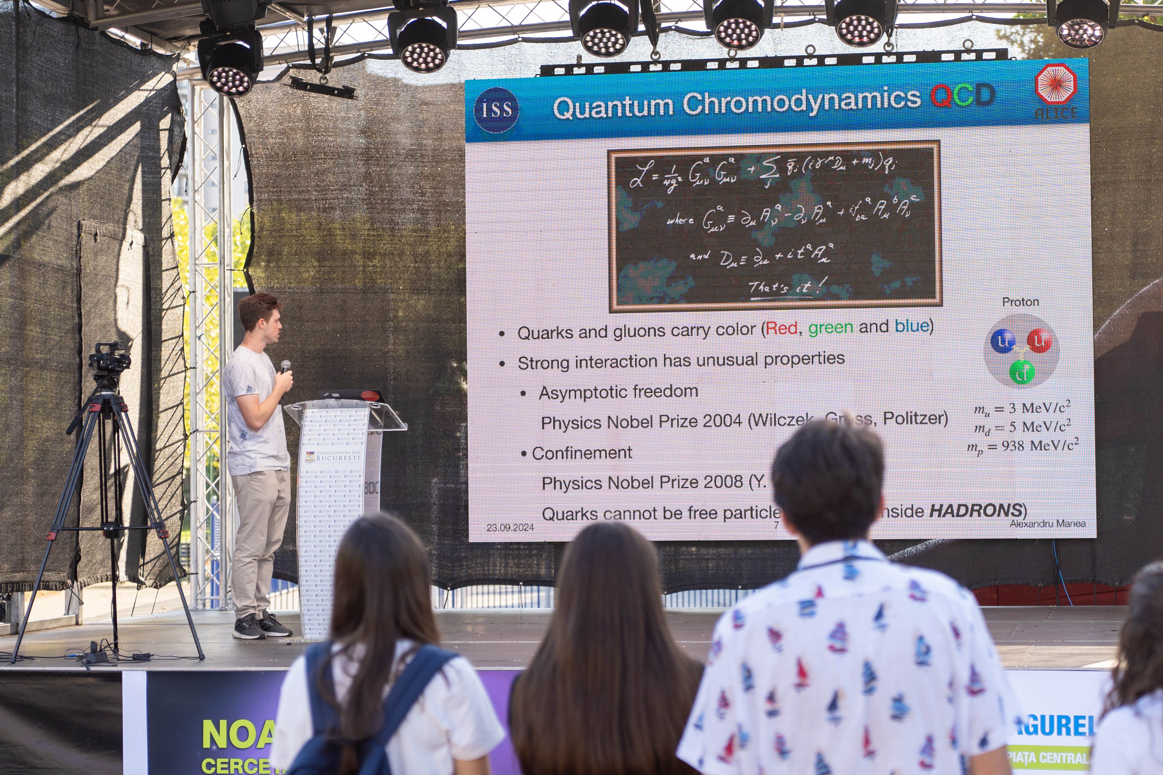 - 17:30 Atomii în slujba Pământului - Drd. Andrei Hotnog - Institutul Național de Cercetare- Dezvoltare pentru Fizică și Inginerie Nucleară „Horia Hulubei” Explorează alături de noi cum cercetările din fizica atomică și nucleară contribuie la soluții pentru energie curată, protecția mediului și tehnologii durabile! De la monitorizarea mediului la materiale rezistente și energie nucleară, vei descoperi legătura dintre știința fundamentală și sustenabilitate.